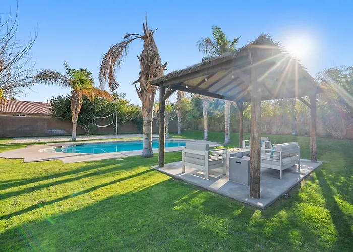 The property is situated 3.1 km from the Indian Spotlight 29 Casino and 4 km from the Indio Fashion Mall Shopping Center. Antigua Villa - Volleyball - Pool - 5Bd is nestled a 15-minute ride from natural attractions like the community South Jackson Park.